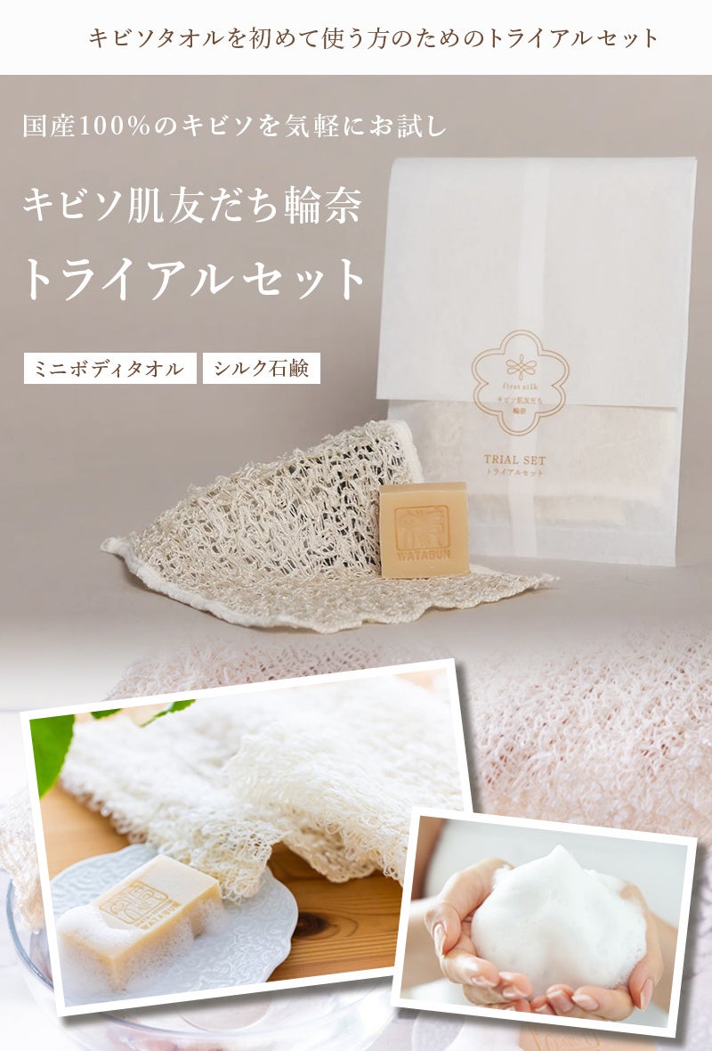 天然新素材「キビソ」に着目した、ボディタオルと石鹸をお届けいたします。